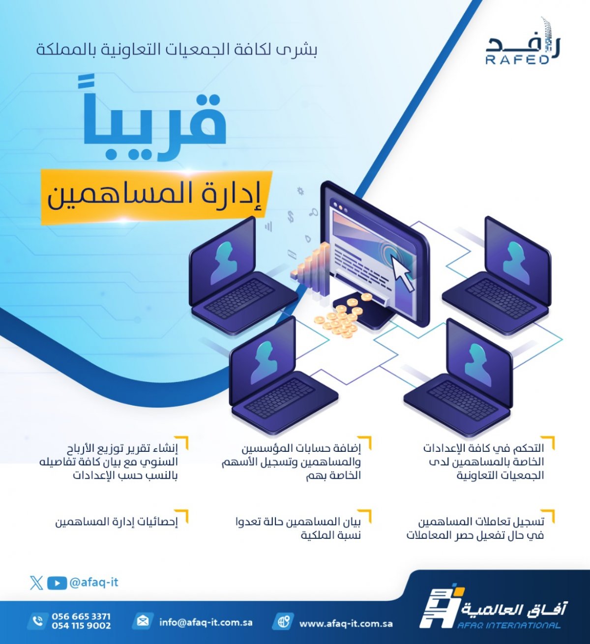 فى الأونة الأخيرة اعتمد كثير من الجمعيات نظام رافد الذى يعد نقطة تحول فى الميدان الخيرى حيث هو لبنة مهمة جدا فى تاريخ التحول التقنى إذ يعتمد على فريق دعم محترم يقدم أفضل الحلول ومخططات سير العمليات وتوزيع المهام واعتمادها وهى التى من خلالها استطعنا تحقيق نجاحات متميزة فى الموارد المالية وفى إدارة الخدمة المجتمعية وفى ضبط إدارة الموارد البشرية وتنظيمها.